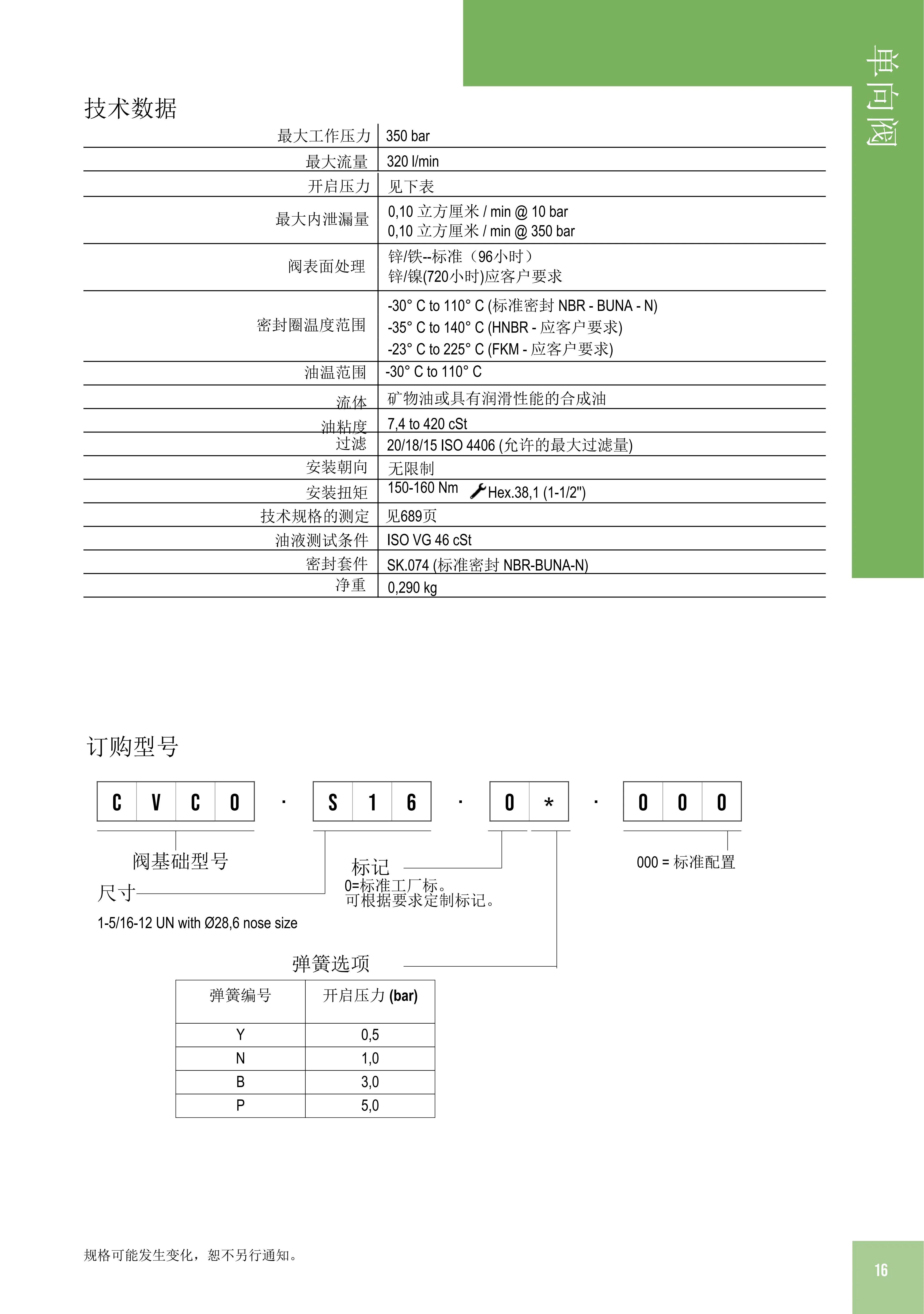 最大內泄露量:0.10 立方厘米/min@ 10 bar;0.10 立方厘米/min@ 350 bar